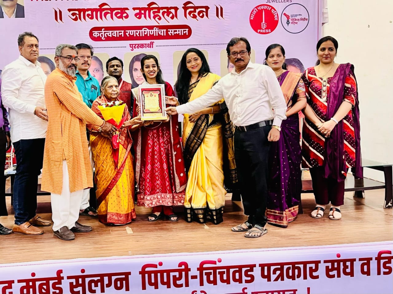 पिंपरी-चिंचवड : जागतिक महिला दिनानिमित्त पिंपरी-चिंचवड पत्रकार संघ आणि डिजिटल मीडिया परिषदेच्या वतीने दरवर्षीप्रमाणे यंदाही विविध क्षेत्रात उल्लेखनीय कामगिरी करणाऱ्या महिलांचा भव्य सत्कार सोहळा आयोजित करण्यात आला.