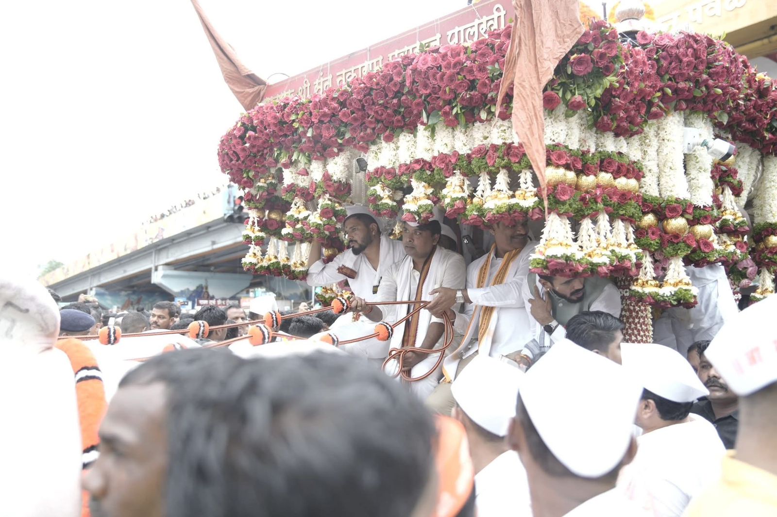 पालखीच्या आगमनावेळी पावसानेही आपली उपस्थिती नोंदवली. हजारो वारकरी टाळ-मृदुंगाच्या गजरात आणि हरिनामाच्या जयघोषात आकुर्डी मुक्कामी मार्गस्थ झाले.