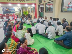ही परिस्थिती लक्षात घेता, आज दिनांक ०७ सप्टेंबर २०२५ रोजी सायंकाळी ६ वाजता हिरो शोरूम, एसबीआय कॉलनी येथे एक विशेष बैठक आयोजित करण्यात आली. या बैठकीस मा. श्री. ज्ञानेश्वर साखरे, मा. श्री. मंगेश ढगे, मा. श्री. राजेंद्र भिसे, रस्ता बांधकाम कंत्राटदार, आणि एसबीआय कॉलनीतील अनेक नागरिक मोठ्या संख्येने उपस्थित होते.