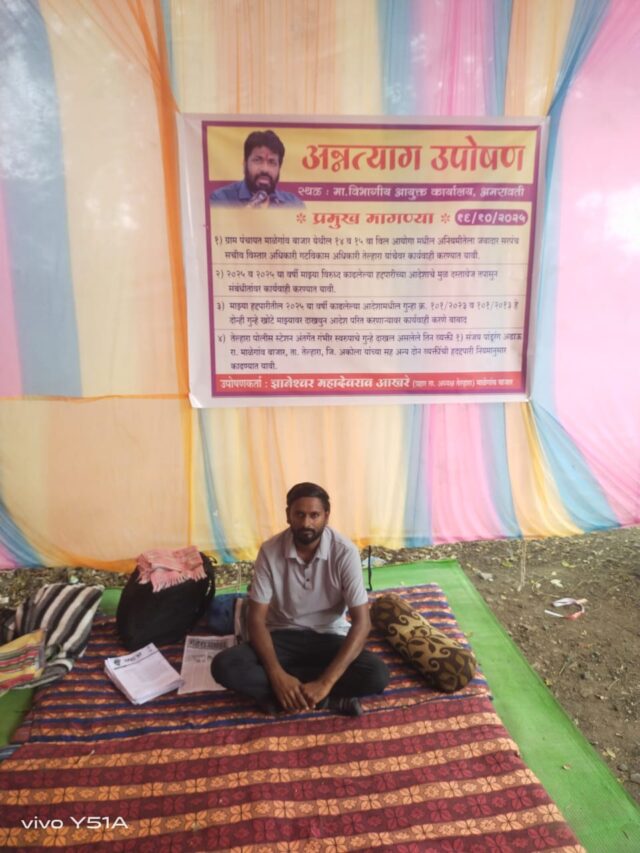 प्रहार तालुका अध्यक्ष ज्ञानेश्वर आखरे यांचे विभागीय आयुक्त कार्यालय अमरावती येथे अन्नत्याग उपोषणास प्रारंभ